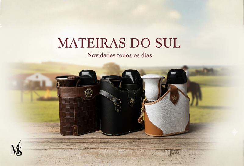 Nossos kits de mateira reúnem praticidade, sofisticação e a verdadeira essência gaúcha. Seja em casa, no trabalho ou em viagem, a Mateiras do Sul acompanha você com elegância, tradição e a qualidade que transforma o simples em especial.